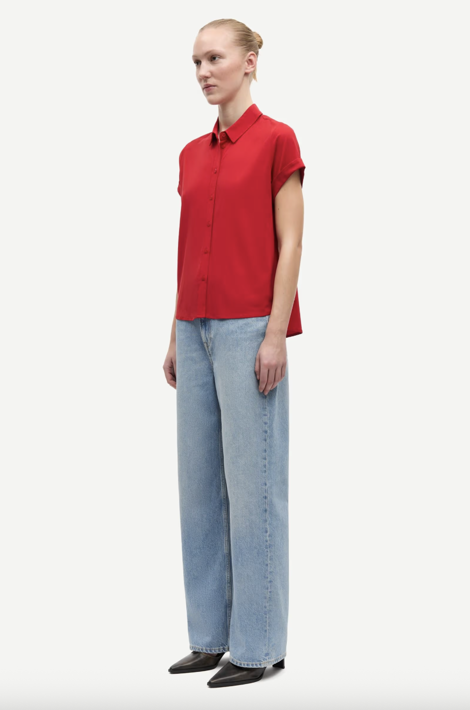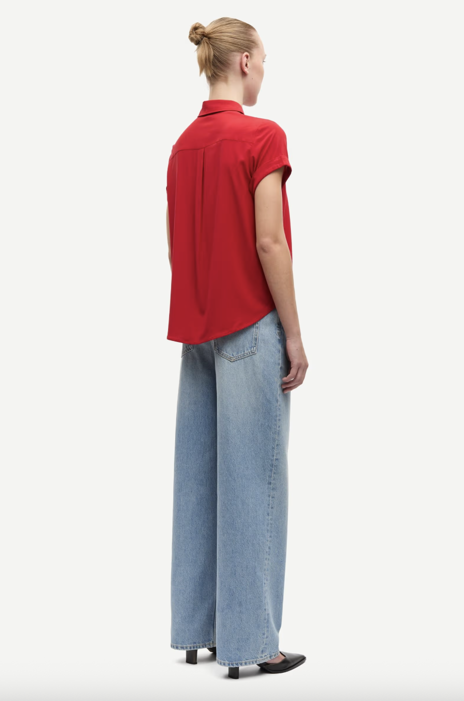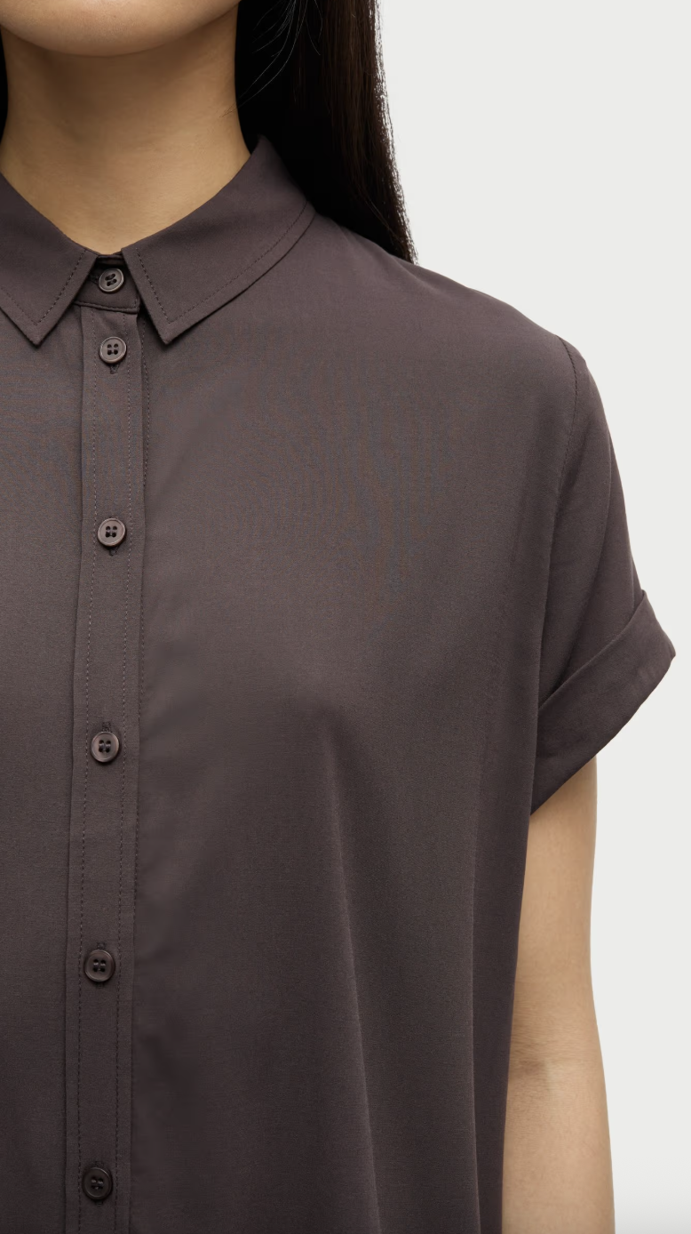 Short-sleeved shirt with a regular fit. Button closure on the front. Neck yoke seam with pleated detailing. Main material made from an elastic LENZING™ ECOVERO™ viscose-blend. This product contains LENZING™ ECOVERO™ Viscose, certified with the EU Ecolabel for meeting high environmental standards.