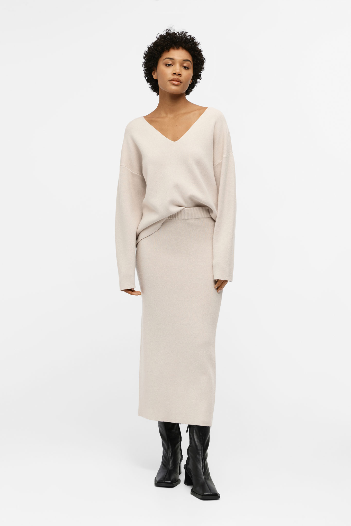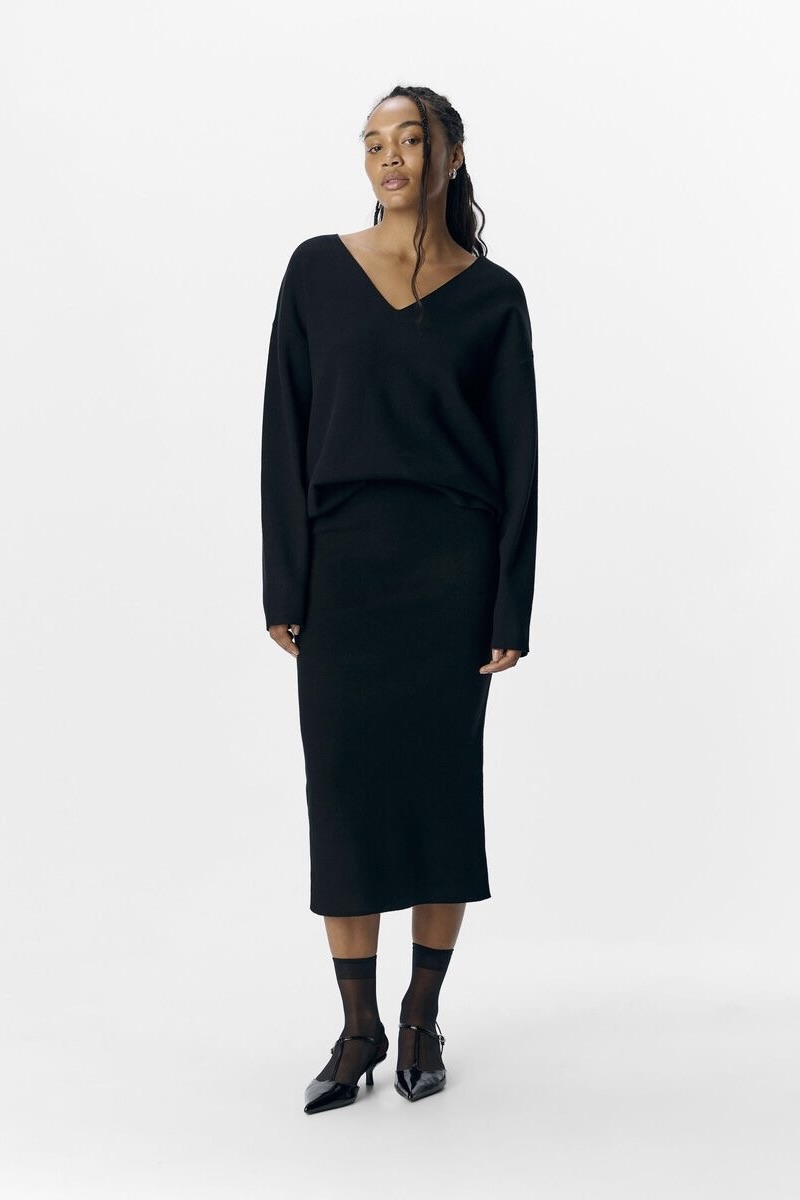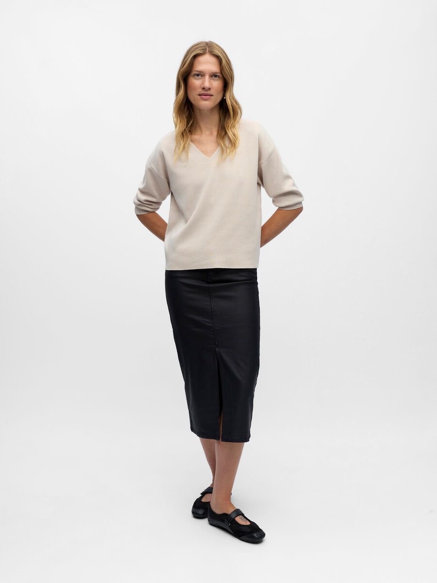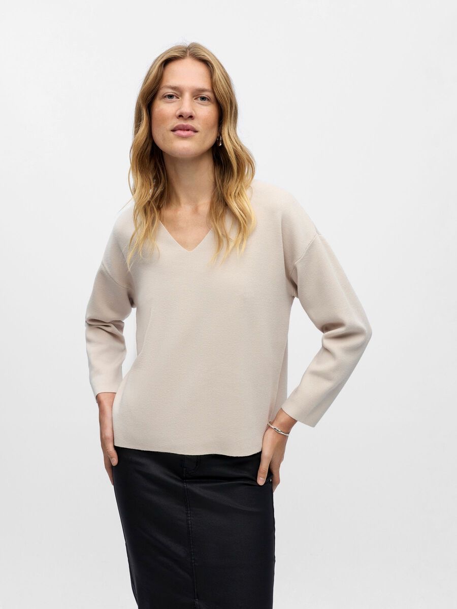 Gebreide trui met V-hals - Lange mouwen met verlaagde schouders - Voelt zacht aan - Relaxed fit - Gemaakt met duurzamere stoffen