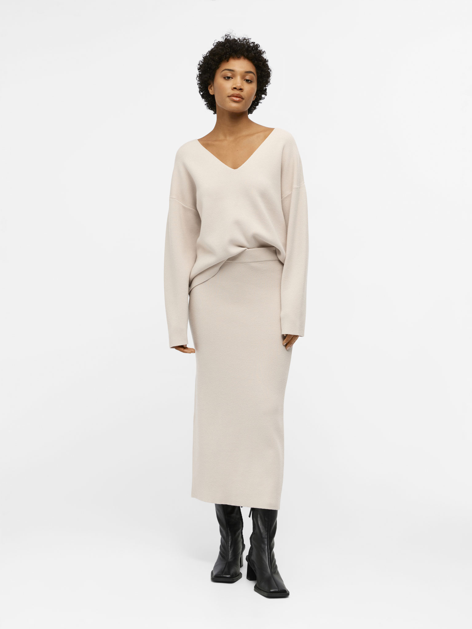 Fit-en-flare gebreide maxirok - Hoge elastische taille - Subtiel uitlopend model - Regular fit