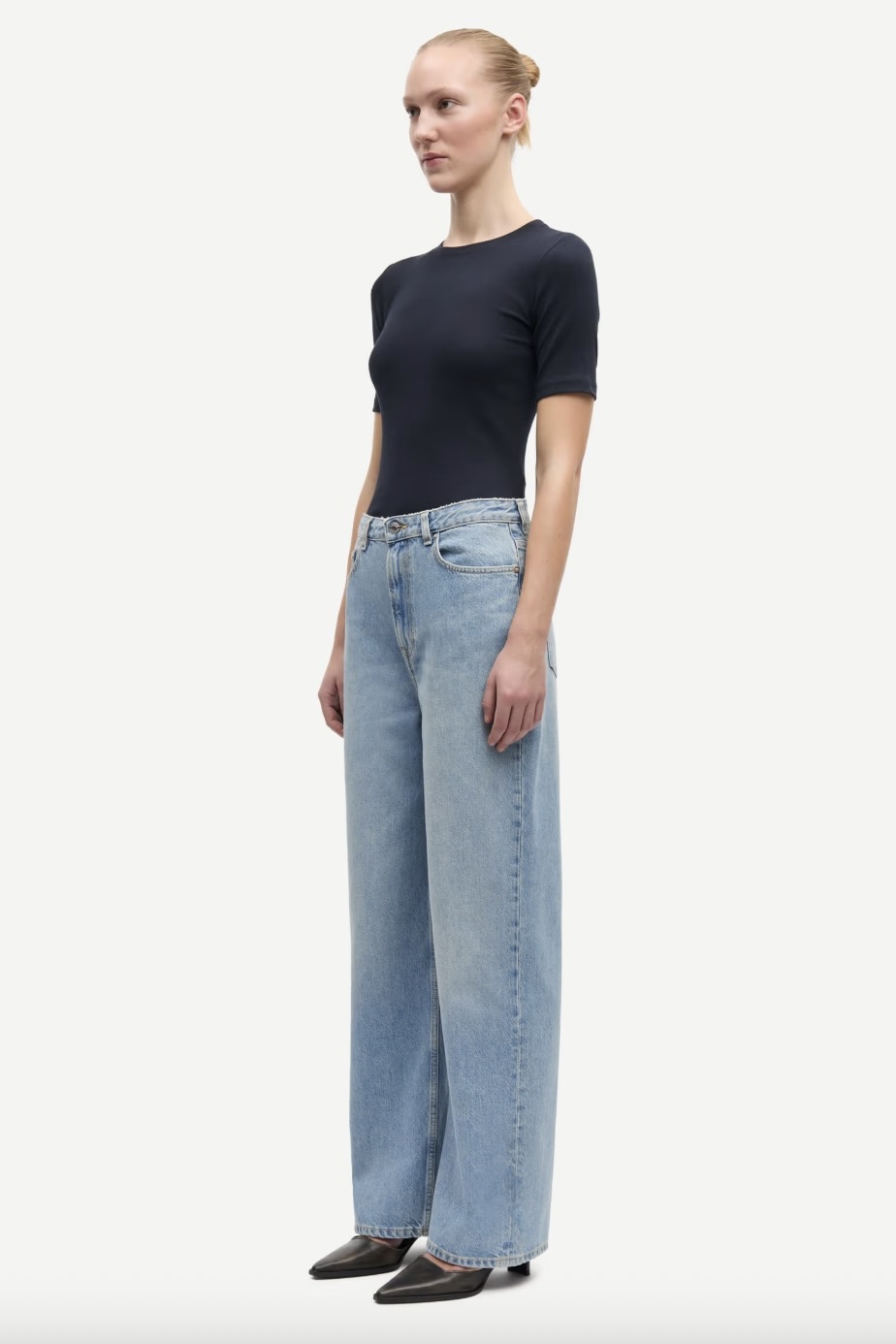 Low-waist jeans with a loose fit and wide leg. Five pocket style. Belt loops. Main material made from 100% organic cotton.