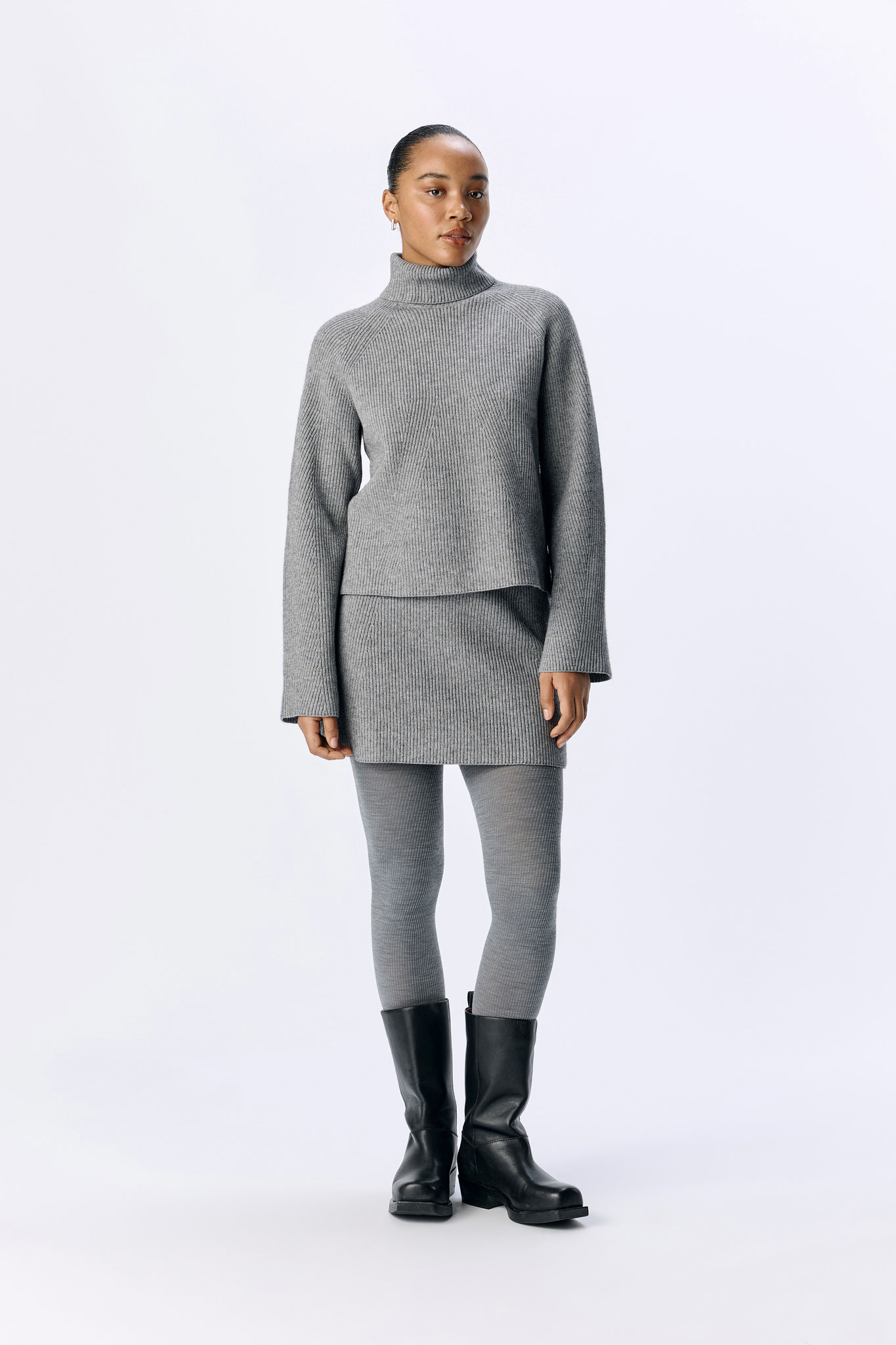- Gebreide minirok - Mid-rise elastische taille - Ribgebreid - A-line - Regular fit