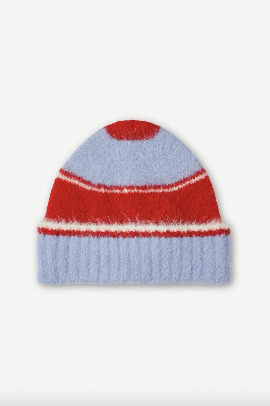 Knitted beanie. Rib-knitted brim. Brushed look. Main material made from an elastic blend including alpaca wool.